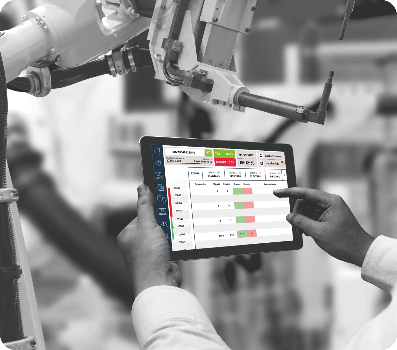 Il collecte automatiquement les données de l’atelier, alerte en cas d’anomalies et guide vos équipes à chaque étape, optimisant ainsi les performances globales. Vous disposez de toutes les informations essentielles pour piloter vos indicateurs clés et améliorer vos processus en continu.